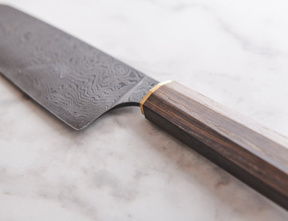 Gefertigt wird dieses Kleinod aus 240 Lagen hochwertigsten Kohlenstoffstahl und wurde in der hauseigenen Schmiede zur Perfektion geschmiedet und geschliffen.