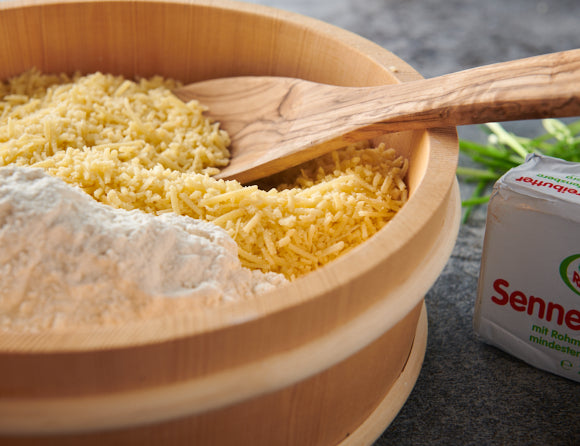 Die aromatische Sennereibutter wird aus thermisiertem Rahm (aus gentechnikfreier Heumilch) hergestellt. Denn für ausgezeichnete Spätzle braucht es natürlich auch eine hervorragende Butter!