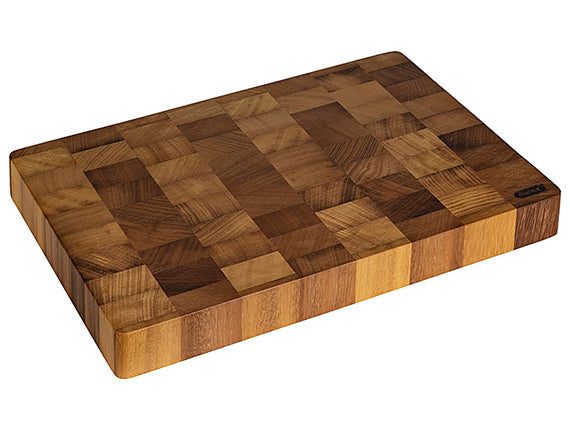 Ein Schneidebrett, das mehr ist als nur ein Küchenhelfer. Das massive Butcher Brett überzeugt durch seine hochwertige Stirnholzverarbeitung, außergewöhnliche Stabilität und eine erlesene Optik, die in jeder Küche zum Hingucker wird.