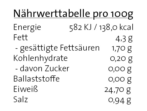 Zutaten: Schweinefleisch, Stärke, Glucosesirup, Speisesalz, Stabilisatoren: Natriumcarbonate, Natriumcitrate, Dextrose, natürliches Aroma, Fruchtzucker, Gewürze(Senf), Säuerungsmittel: Citronensäure, Farbstoff: Ammoniak-Zuckerkulör, Raucharoma, Rauch. Verantwortlicher Lebensmittelunternehmer: Schwamm & Cie mbH - Bismarckstraße 144-154 - D-66121 Saarbrücken